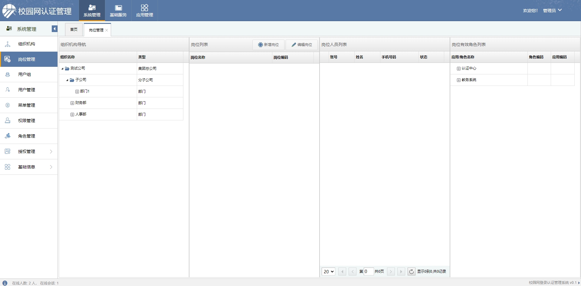 基础信息管理:对校园基础部门和岗位的基本信息进行管理;