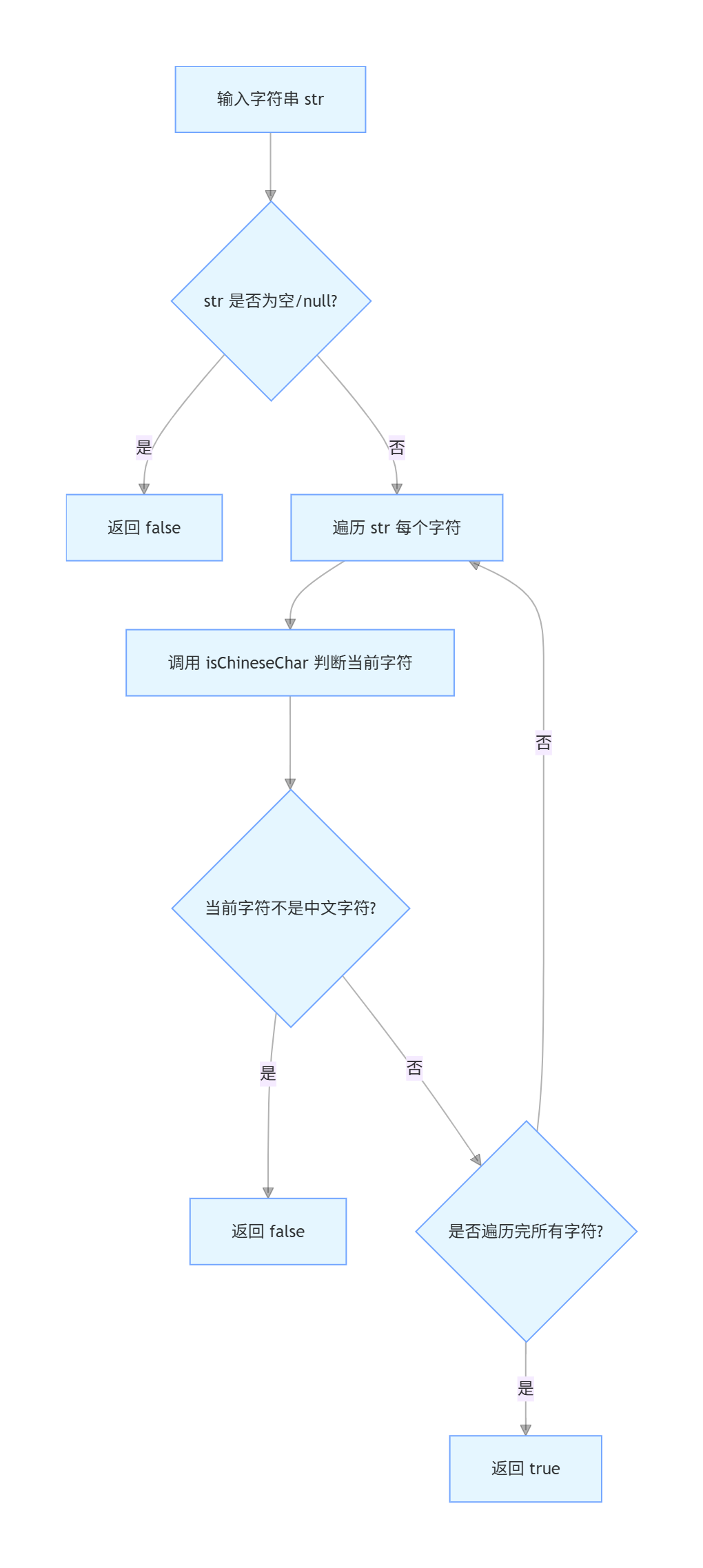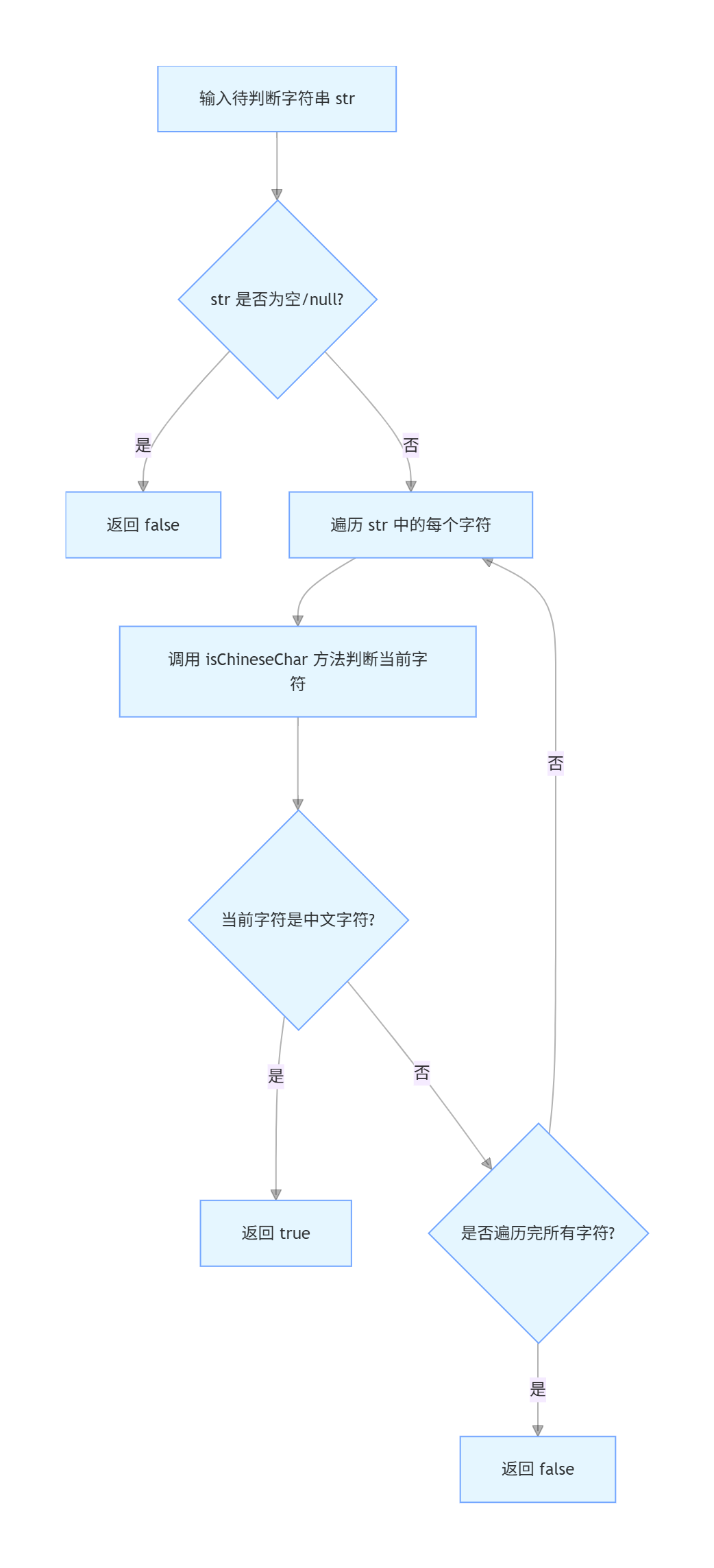 接下来,我们可以扩展这个方法,使其能够判断整个字符串是否包含中文字符: