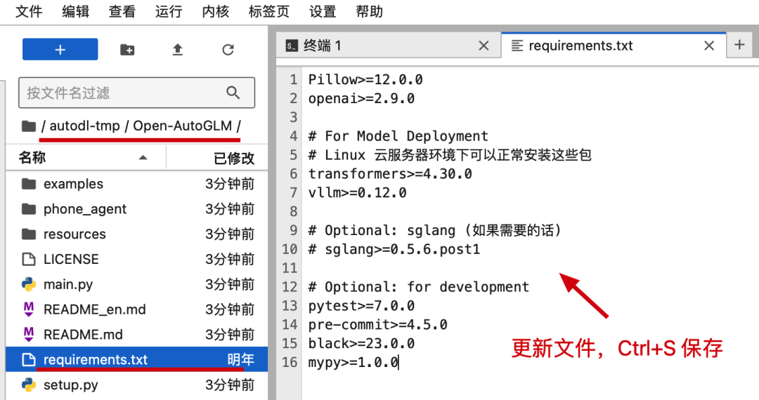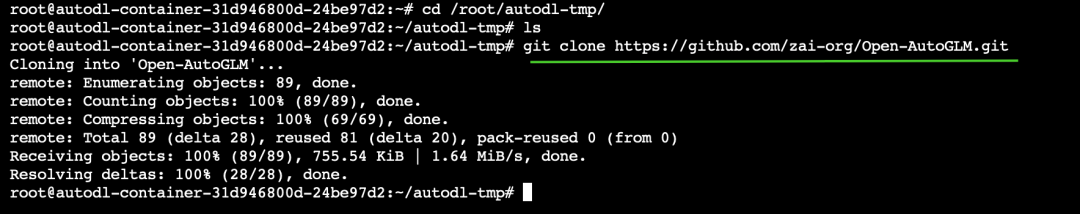 /root/autodl-tmp 拉取项目工程代码 git clone https://github.com/zai-org/Open-AutoGLM.git