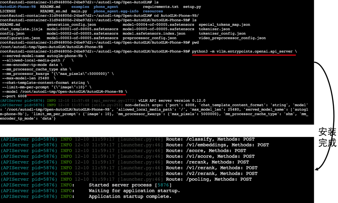 zai-org/AutoGLM-Phone-9B 从 https://huggingface.co/zai-org/AutoGLM-Phone-9B/tree/main 下载,修改为已经下载好的本地的路径地址。autodl.com 算力指定的自定义服务,对外暴漏的端口有 6008、6006 部署后,用 https://uu835267-800d-24be97d2.westc.gpuhub.com:8443 访问服务。执行脚本