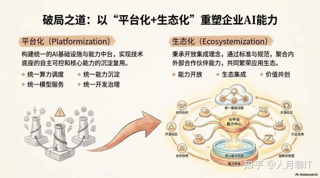 面对“新孤岛”困境和向“知识驱动”转型的架构演进趋势,企业破局的战略 imperatives 是“平台化”与“生态化”的双轮驱动。