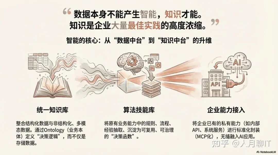 在能力层中,我们必须再次强调**统一规划的“知识库”**的核心地位。它不仅是一个存储库,更是企业“知识中台”的雏形——我们将在下一节探讨的、真正驱动智能的引擎。