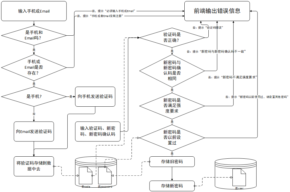 //先验证手机号或邮箱格式,然后验证在用户数据库中是否存在。