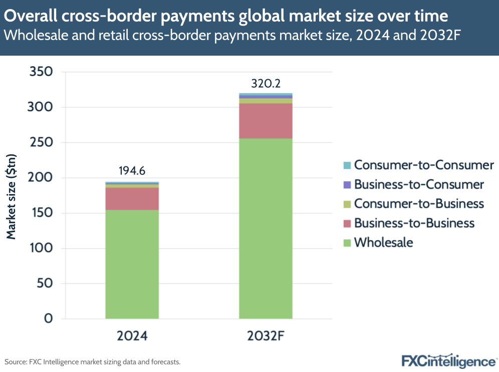 根据最新研究数据,跨境支付市场预计到2032年将增长至320万亿美元。Swift 数据显示,其流量以15年来最快速度增长,总交易量较十年前增加了一倍以上。这一增长背后是全球化贸易的深化和数字经济的蓬勃发展。
