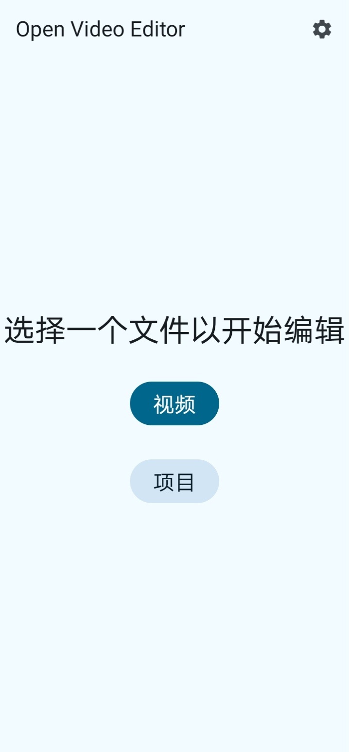 maven { url = uri("https://mirrors.tuna.tsinghua.edu.cn/repository/maven-central/") }增加以上配置的目的是引入国内的仓库地址,以便加快相关依赖包的下载速度。 等待OpenVideoEditor工程编译通过,把demo应用安装到手机上,启动之后的App界面如下图所示: