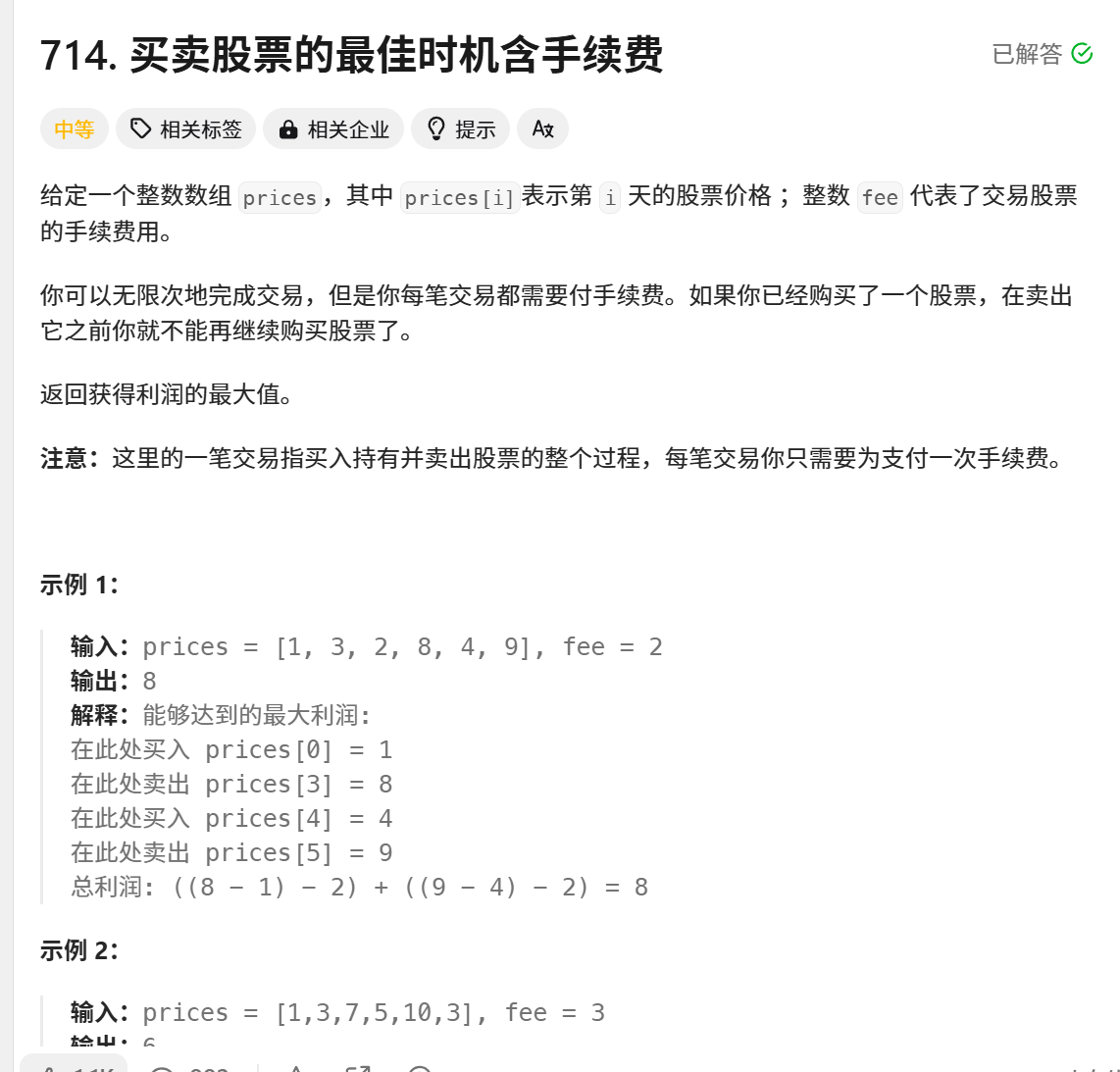 所以g[i]=max(g[i-1],f[i-1]+prices[i]-fee)。