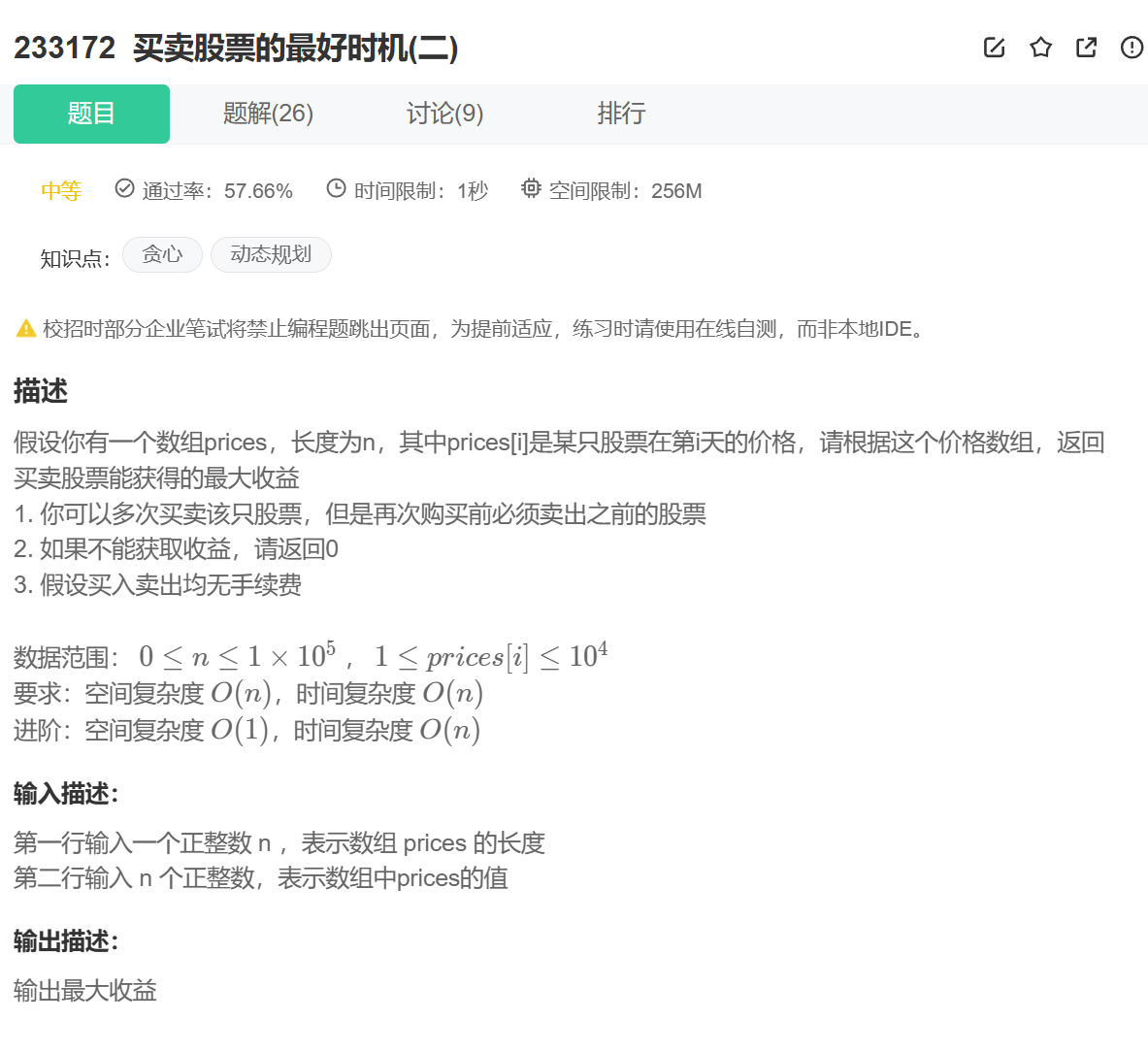 prices = [1,2,3,4,5],对于这种情况,最大利益是在第一天买入,在最后一天卖出。只交易一次。