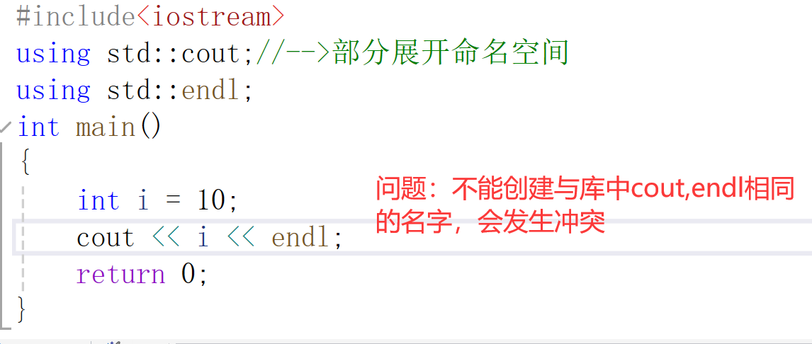using std::cout;//-->部分展开命名空间