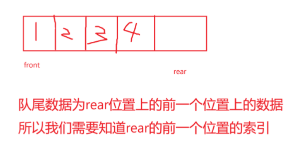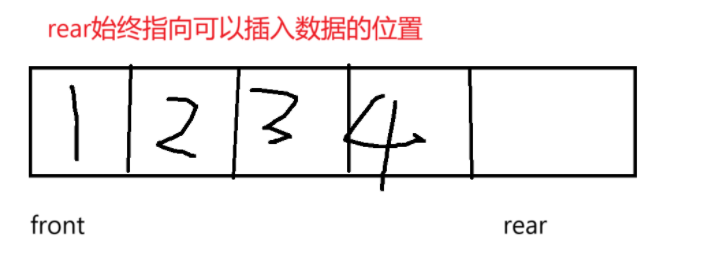 如果队列没有满,我们在rear处入数据,入一个数据,rear++。
