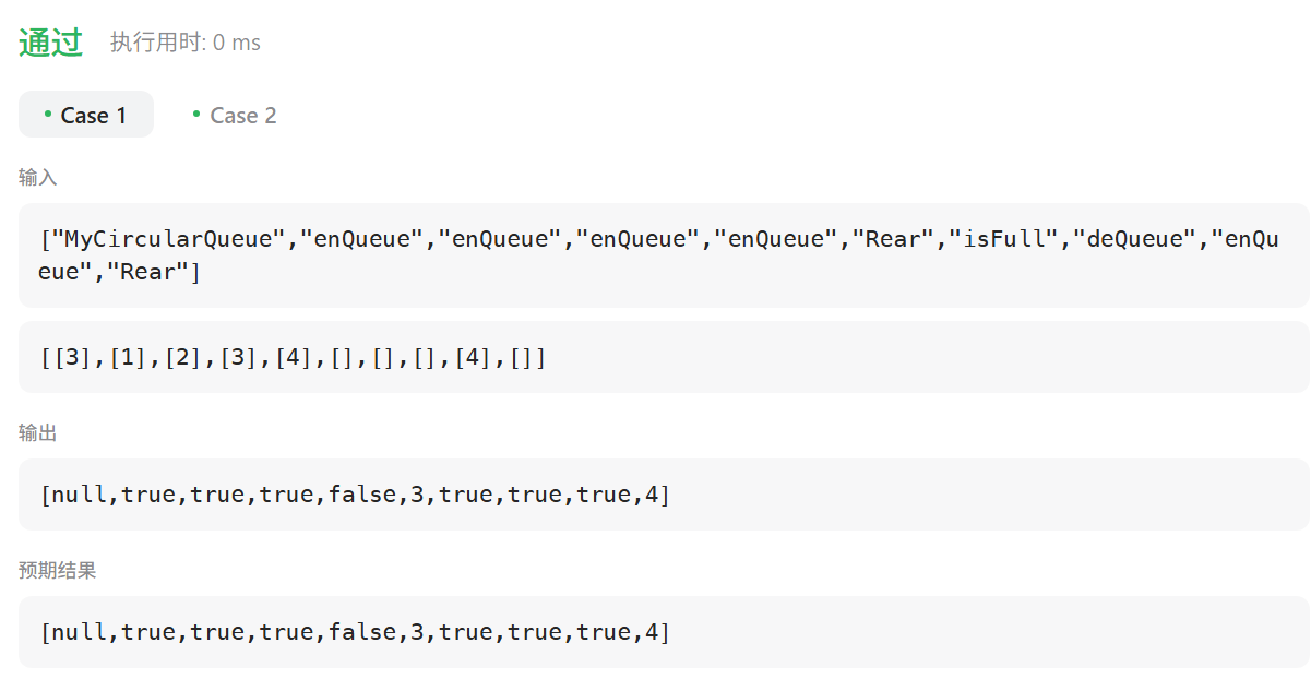 MyCircularQueue(k): 构造器,设置队列长度为 k 。Front: 从队首获取元素。如果队列为空,返回 -1 。Rear: 获取队尾元素。如果队列为空,返回 -1 。enQueue(value): 向循环队列插入一个元素。如果成功插入则返回真。deQueue(): 从循环队列中删除一个元素。如果成功删除则返回真。isEmpty(): 检查循环队列是否为空。isFull(): 检查循环队列是否已满。