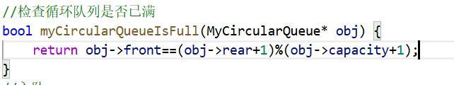 return obj->front==(obj->rear+1)%(obj->capacity+1);