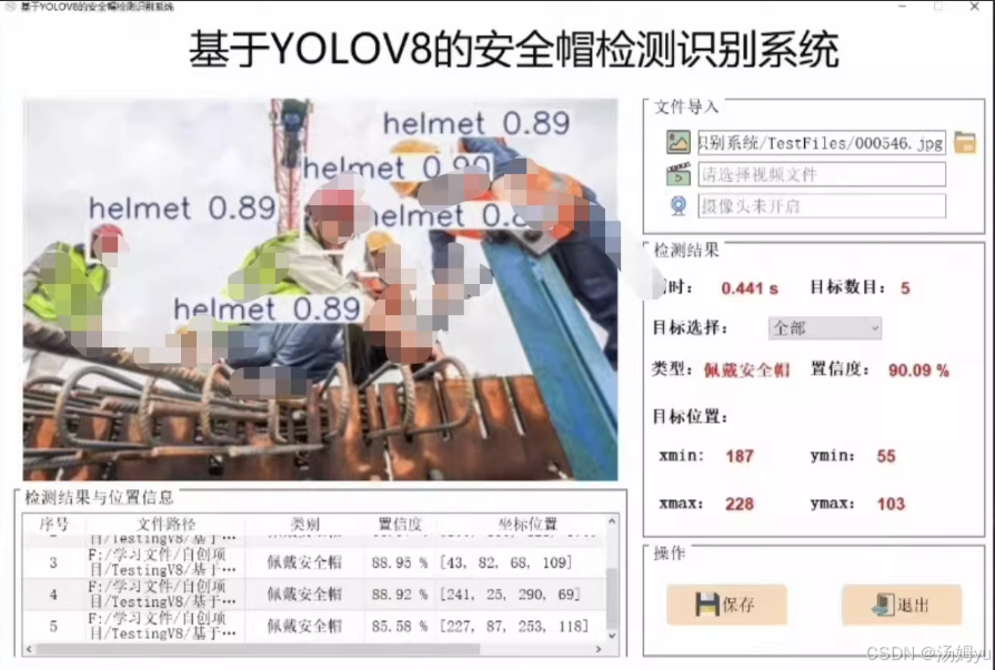 在建筑、矿山、电力检修等高危作业环境中,安全帽作为头部防护的核心装备,其佩戴规范性直接关系到作业人员的生命安全。据国家安全生产监督管理总局统计,在各类工伤事故中,因未佩戴安全帽或佩戴不规范导致的头部伤害占比高达35%以上,尤其在建筑行业,头部伤害事故率在未规范佩戴场景下上升30%以上。传统人工巡查方式依赖人力监督,存在效率低下、覆盖范围有限、主观性强等缺陷,难以满足大规模作业场所的实时监管需求。例如,某大型建筑项目日均作业人员超200人,人工巡查需投入大量人力,且漏检率高达15%,导致安全隐患难以彻底消除。随着计算机视觉与深度学习技术的突破,基于目标检测算法的自动化安全监管成为行业刚需。YOLO(You Only Look Once)系列算法凭借其高效的实时检测能力,在工业安防领域广泛应用。其中,YOLOv8作为最新版本,通过完全Anchor-free检测机制、改进的CSPDarknet骨干网络及Task-aligned Assigner损失函数优化,在COCO数据集上实现了检测精度与速度的显著提升。其创新点包括:采用CIoU损失函数提升边界框回归精度,解决传统方法中分类与定位目标不一致的问题;支持多输入源处理,可兼容静态图片、视频流及摄像头实时采集;在NVIDIA RTX 3060显卡环境下,1080P分辨率图像处理帧率稳定在35FPS以上,满足工业场景的实时性要求。基于YOLOv8的安全帽检测系统,通过深度学习模型与可视化界面的结合,可实现佩戴状态的精准识别与异常预警,为工业安全提供智能化解决方案。