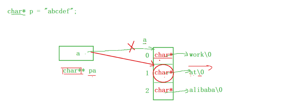 char* p = "abcdef";//p是一个指针变量,字符串为常量字符串,p中存放的是字符串首元素的地址。 1、 printf("%d\n", sizeof(p));//p是一个指针变量,一个指针变量大小是4/8。 2、printf("%d\n", sizeof(p + 1));//p中存放的是字符串首元素的地址,指针+1跳过一个字符,p+1表示b的地址,结果是4/8 3、 printf("%d\n", sizeof(*p));//p中存放的是字符串首元素的地址,*p表示a,结果是1 4、 printf("%d\n", sizeof(p[0]));//p[0]==*(p+0),表示a,结果是1 5、printf("%d\n", sizeof(&p));//p中存放的是字符串首元素的地址,&p是一个二级指针,存放的是p自己的地址,结果是4/8 6、printf("%d\n", sizeof(&p + 1));//&p是一个二级指针,存放的是p自己的地址,&p + 1是地址,结果是4/8 7、 printf("%d\n", sizeof(&p[0] + 1));//p[0]==*(p+0),表示a,&p[0]表示a的地址,&p[0] + 1表示b的地址,结果是4/8。 代码6: