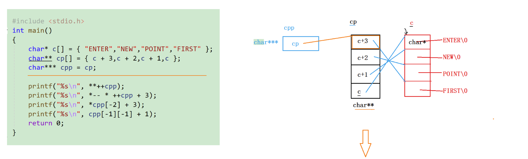 char** cp[] = { c + 3,c + 2,c + 1,c };