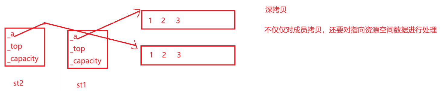 那我们该如何解决呢? 对于这种情况,我们要使用深拷贝:不仅仅是对成员拷贝,还是对指向资源空间数据进行拷贝