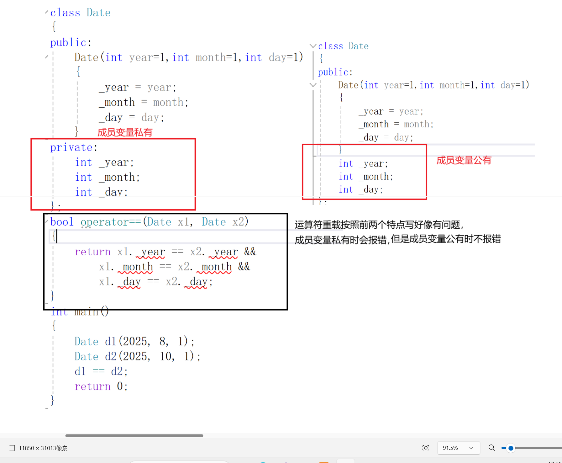 但是当运算符被用于自定义类型的对象时,C++是允许我们通过运算符重载的形式指定新的含义。C++规定自定义类型对象使用运算符时,必须转换成调用对应运算符重载,若没有对应的运算符重载,则会编译报错。
