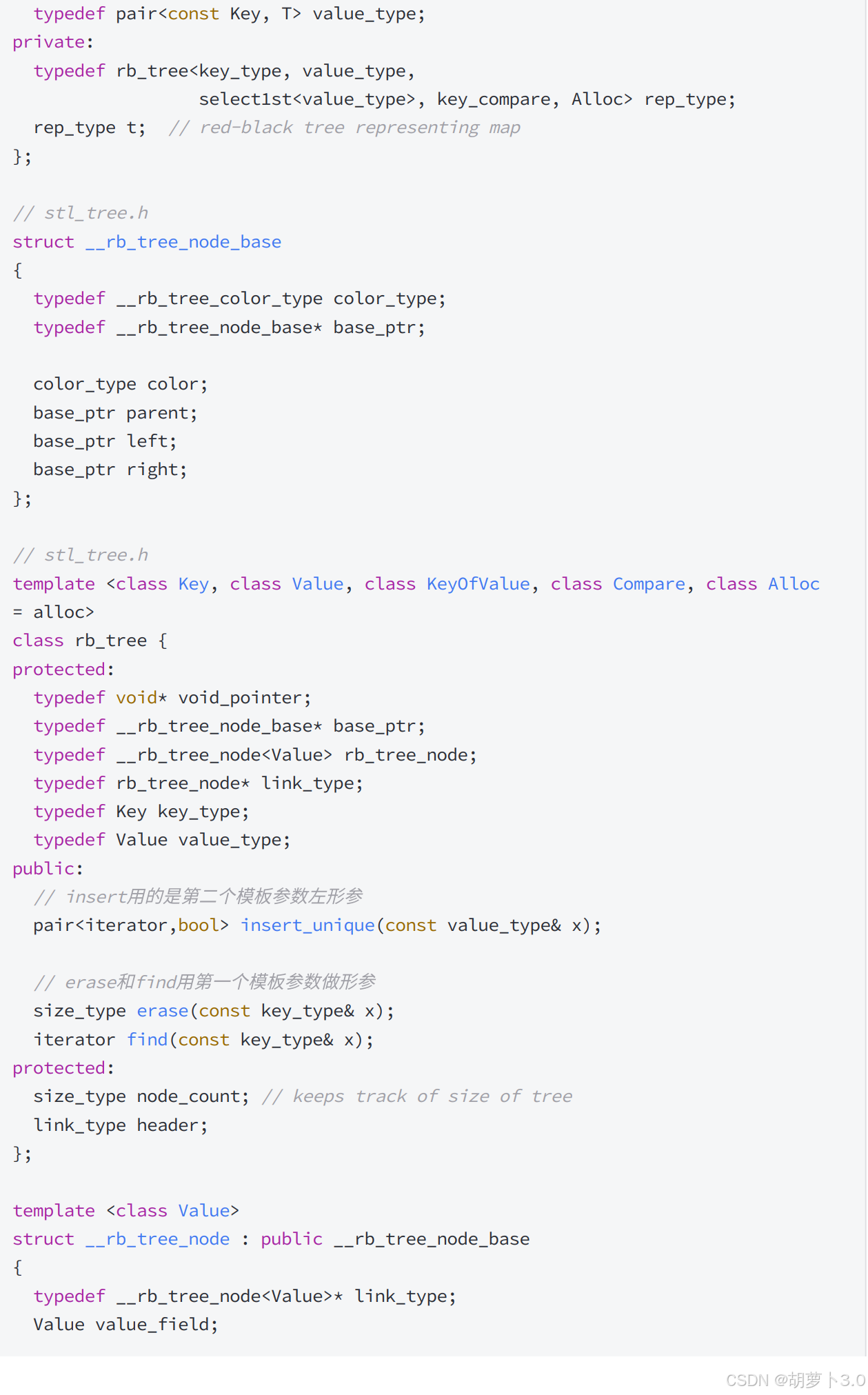 通过对框架的分析,我们可以看到源码中的rb_tree用了一个巧妙的泛型思想实现,rb_tree是实现: