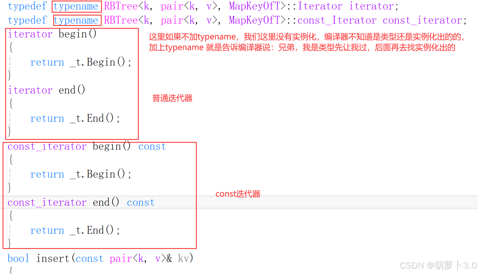 typedef typename RBTree<k, pair<const k, v>, MapKeyOfT>::Iterator iterator;