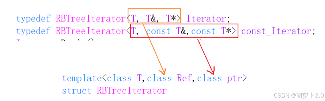 typedef RBTreeIterator<T, T&, T*> Iterator;