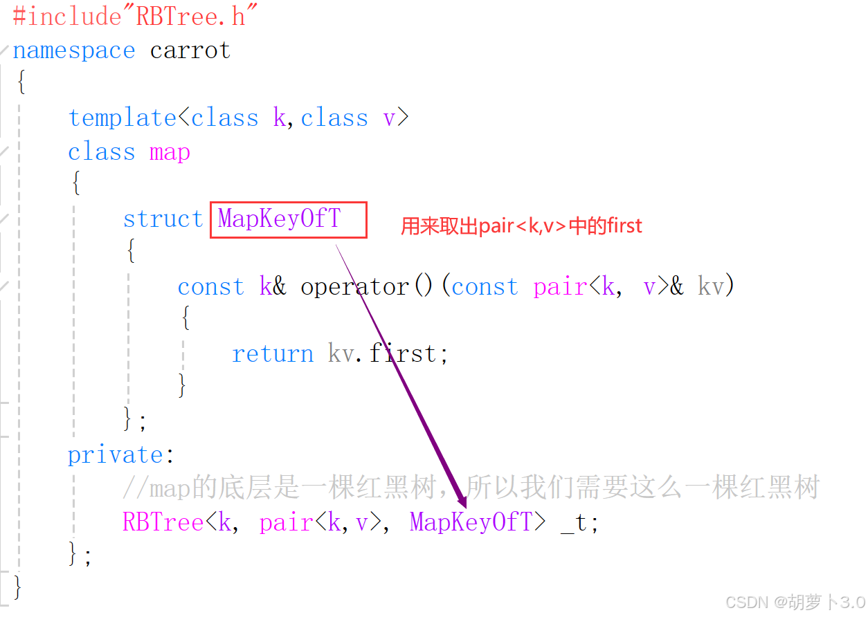 RBTree<k, pair<const k,v>, MapKeyOfT> _t;