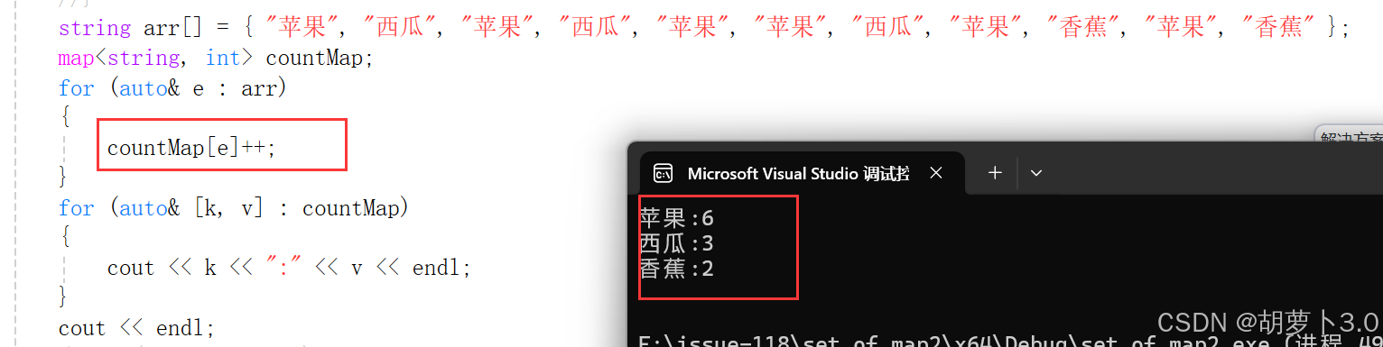 map<string, int> countMap;
