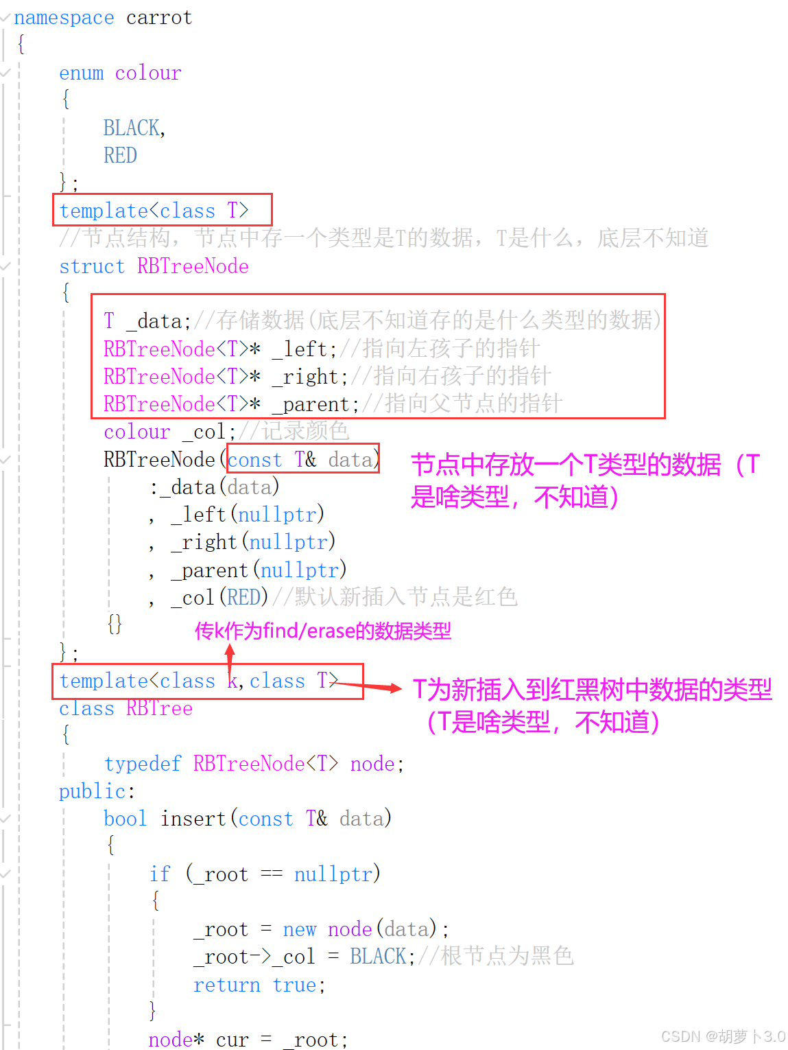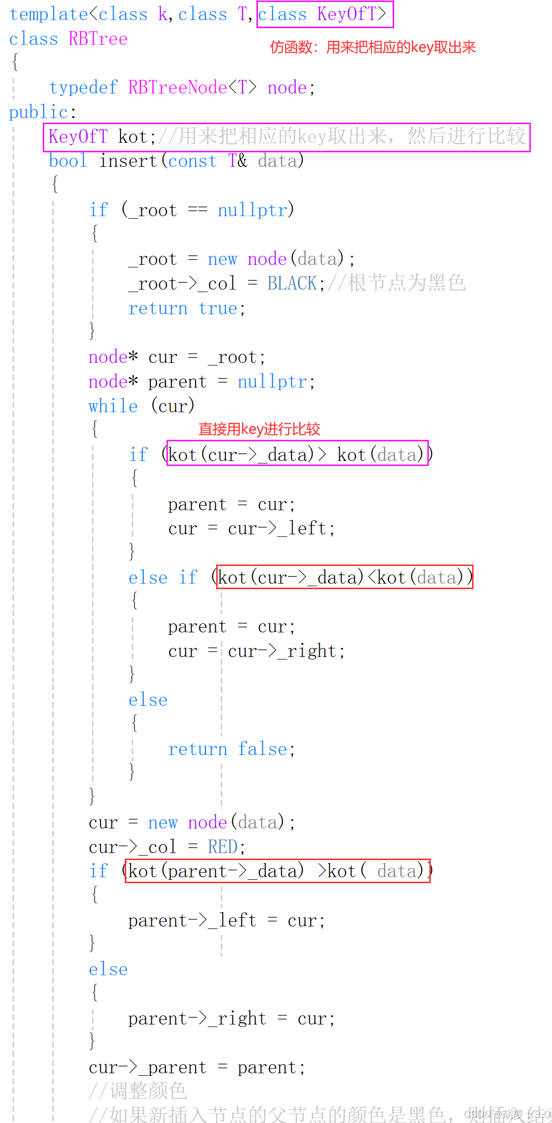 T = K 或 T = pair<const K, V>)及insert代码实现ok,既然我们已经知道源码中是使用第二模板参数来决定我红黑树中存的是什么数据,那我们也可以按照此方法对我们的红黑树进行改造: