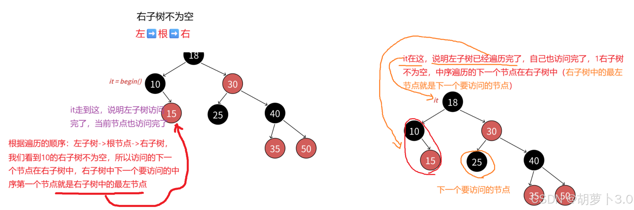 (++it)it走的下一个是谁?右子树不为空,就是右子树中的最左节点