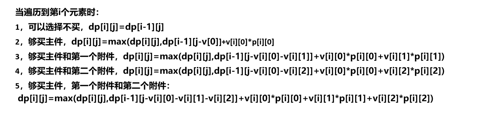 v[i][j]:表示第i个物品的第j个附件的价格