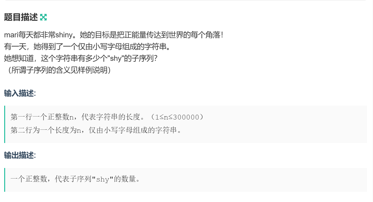 本题要求,求出一个字符串的所有子序列中,有多少个是shy???