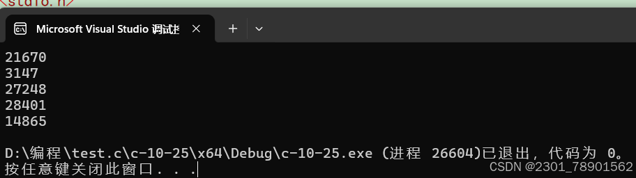 测试一下rand函数,多次调用,产生五个随机数