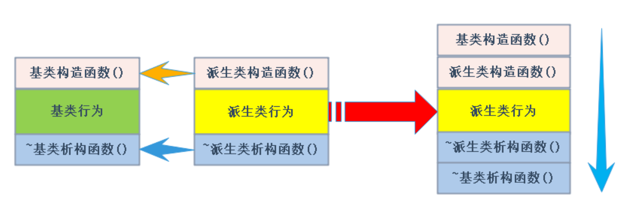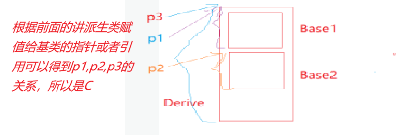 ⼀个派⽣类有两个或以上直接基类时称这个继承关系为多继承,多继承对象在内存中的模型是,先继承的基类在前⾯,后⾯继承的基类在后⾯,派⽣类成员在放到最后⾯。