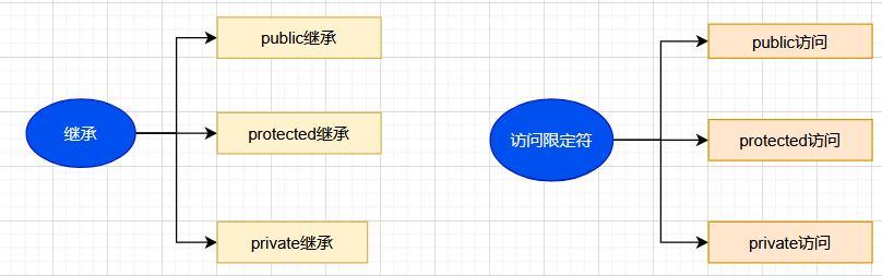 继承基类的方式不同不然会导致,访问基类成员的方式不同,具体如下: