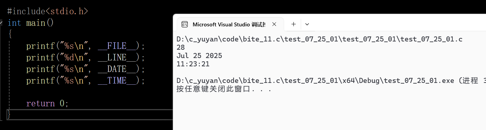 C语言设置了一些预定义符号,可以直接使用,预定义符号也是在预处理期间处理的。