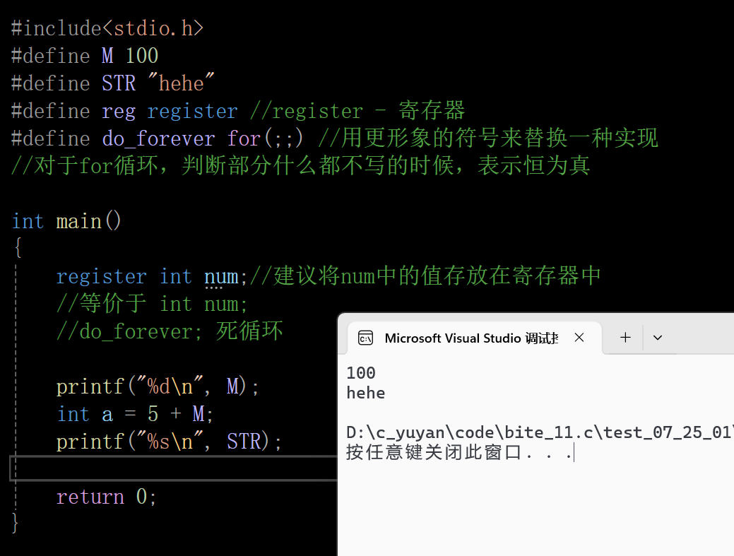 宏通常被应用于执行简单的运算。 比如前面在两个数种找出较大的一个时,写成宏更有优势: