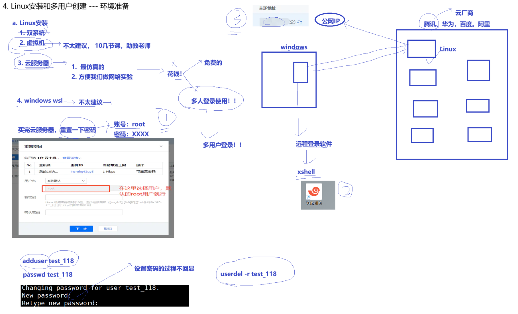 这里我主要介绍一下什么是云服务器 现在有一些公司,例如腾讯,华为,百度,阿里,这些公司称为云厂商,他们会提供对应的云服务,这就需要我们花一点钱,在这些厂商里面购买一台云服务器,云服务器搭载的系统就是Linux,我们只需要在Windows上使用一款远程登陆软件去访问Linux机器