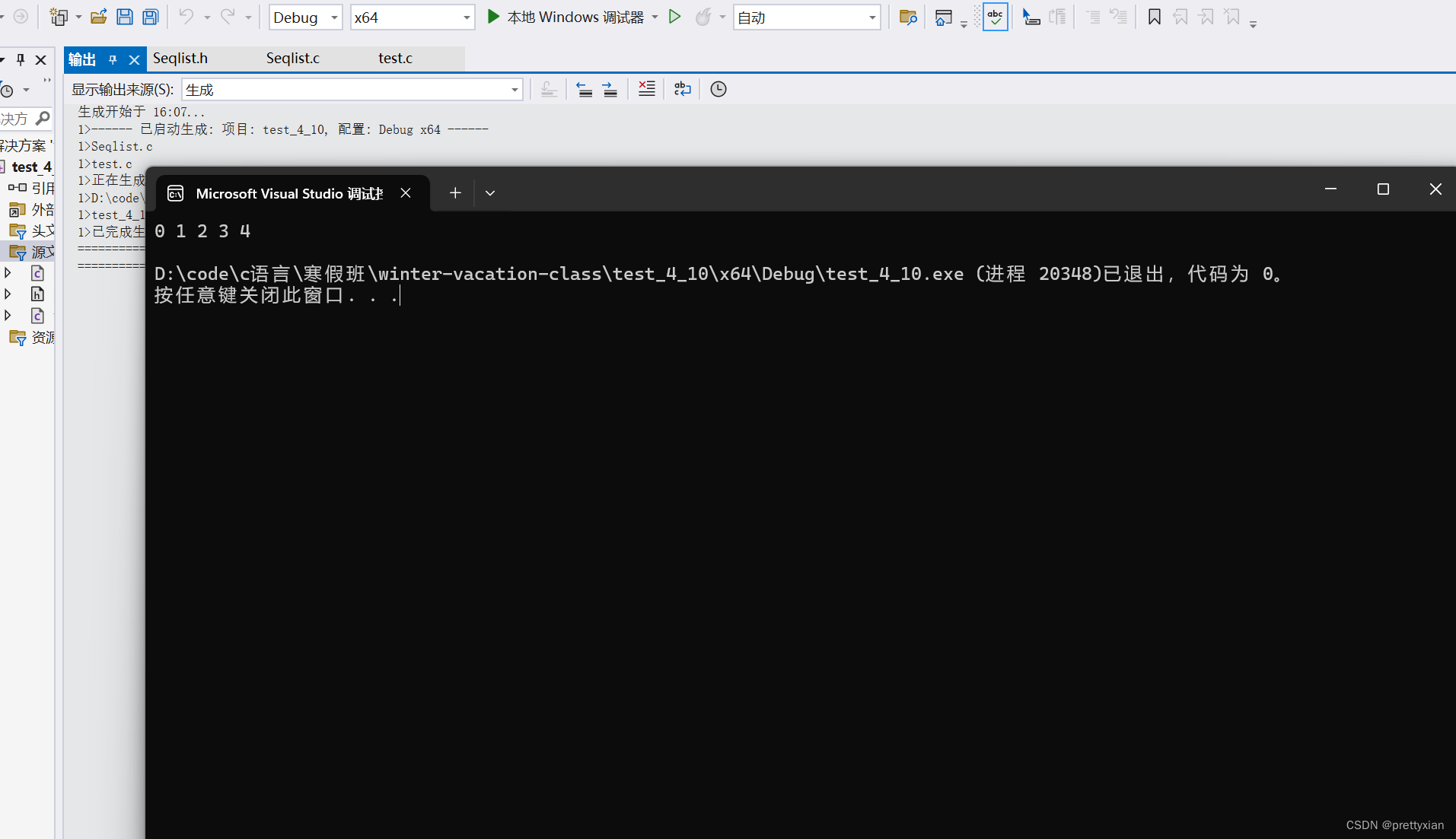 预期结果是0 1 2 3 4,调试看一下