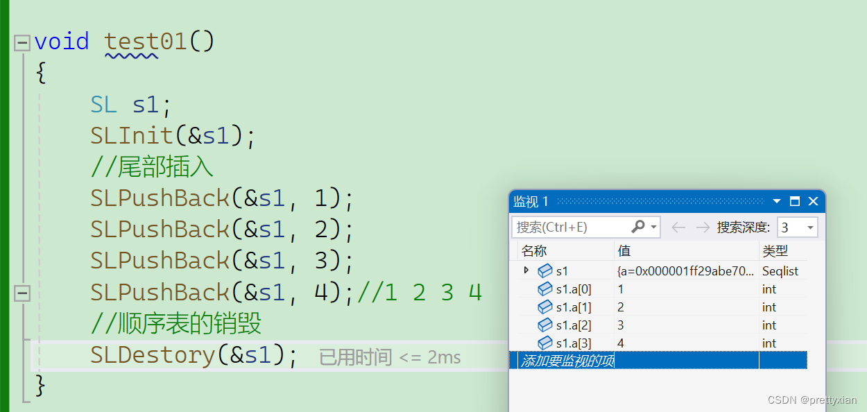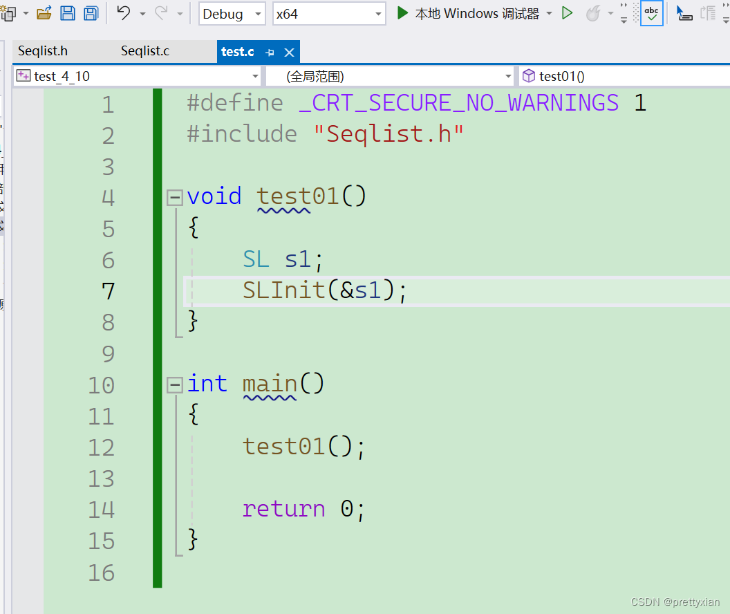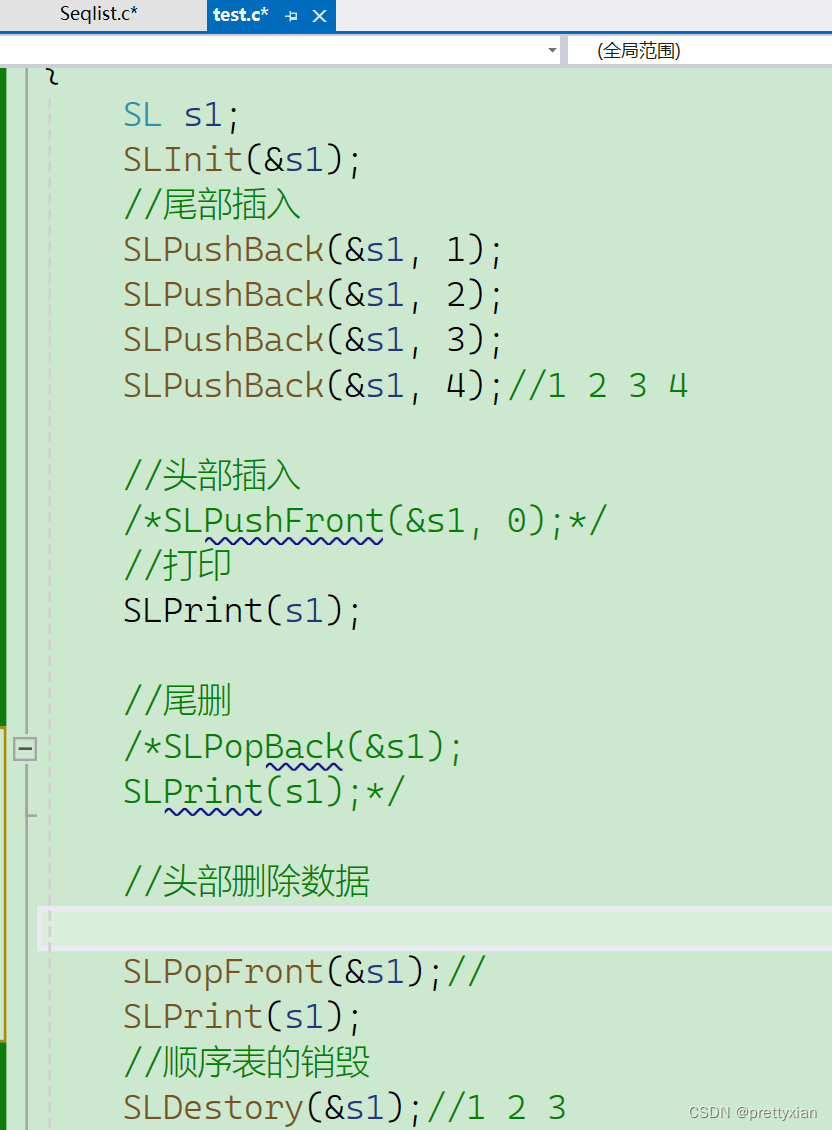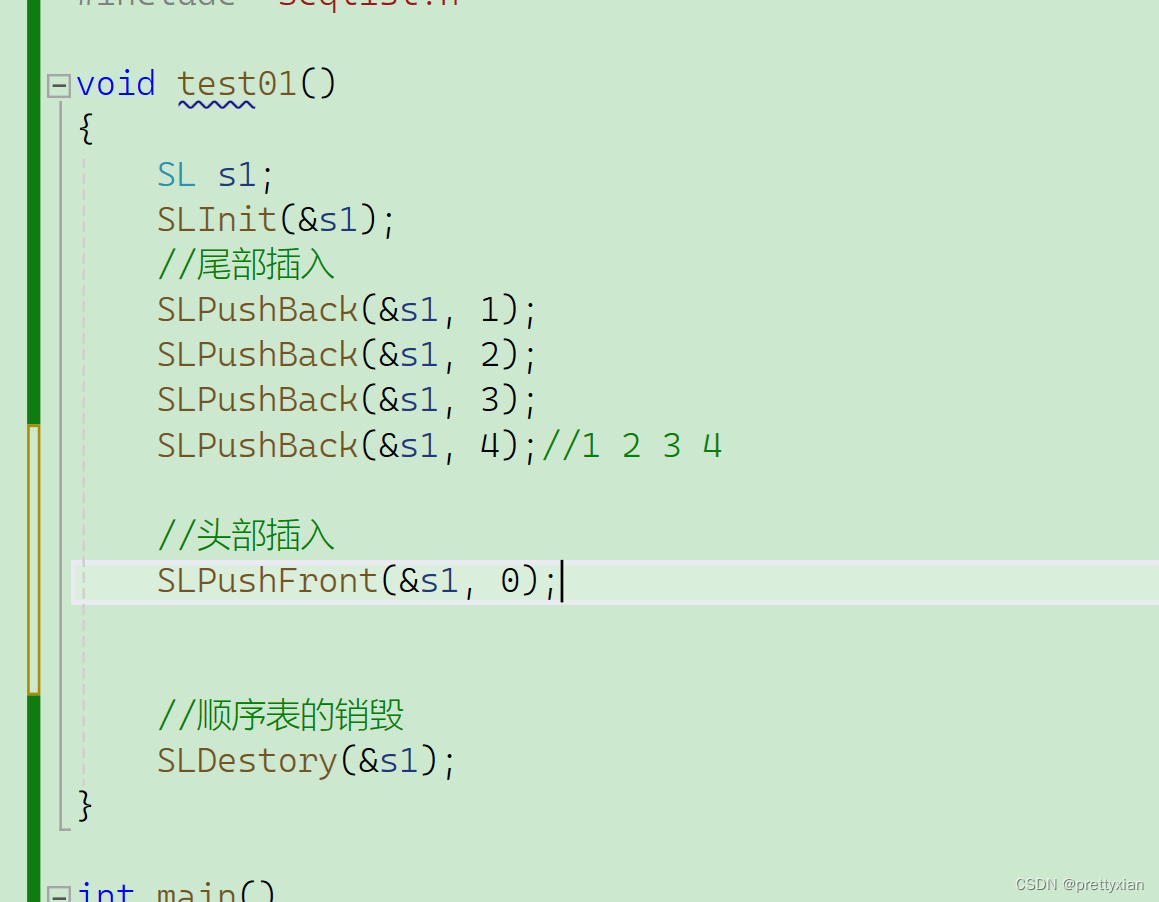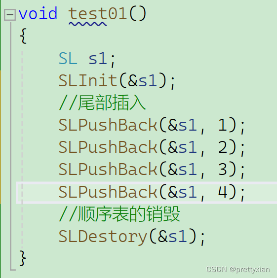int SLFind(SL* ps, SLDataType x);接下来我们在Seqlist.c中实现各种方法