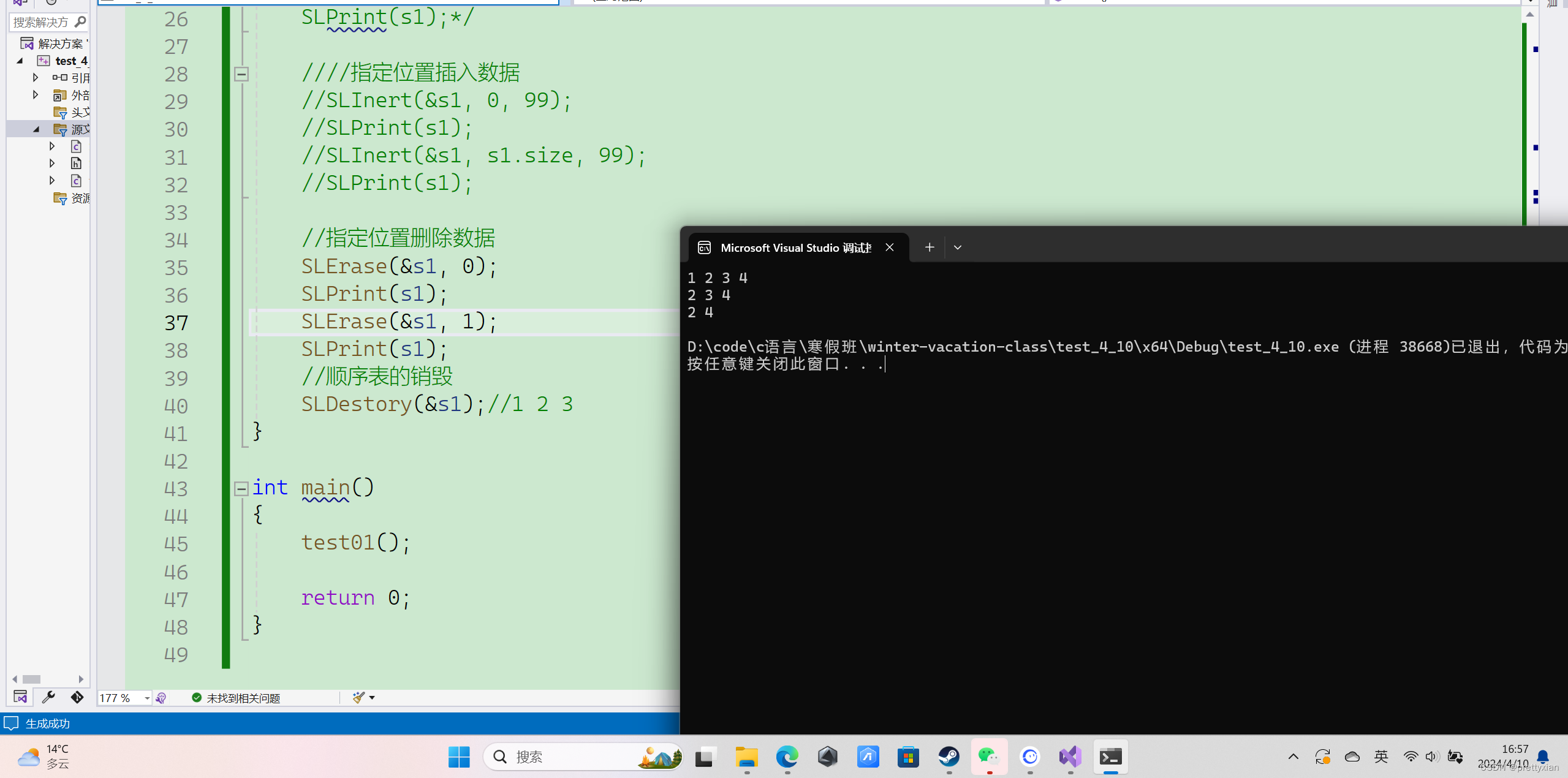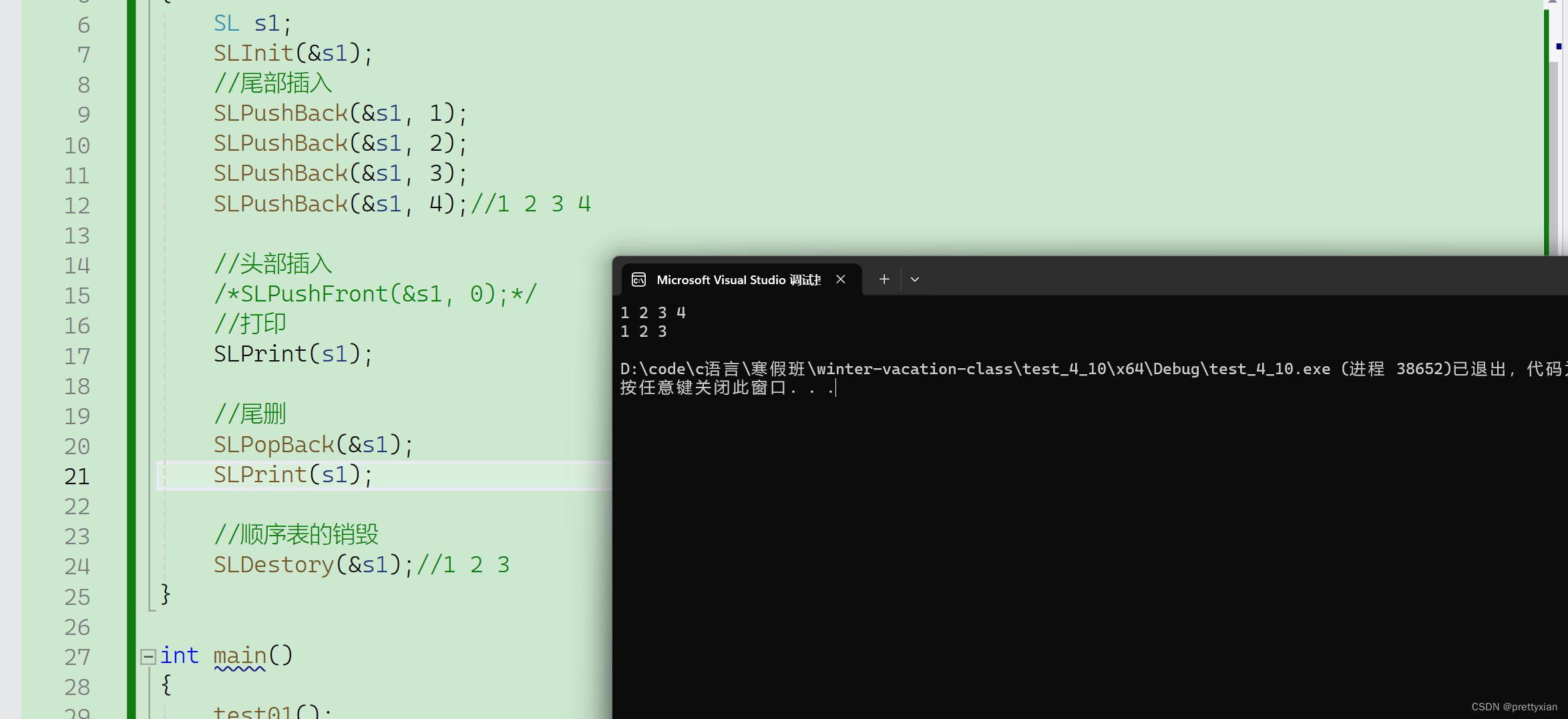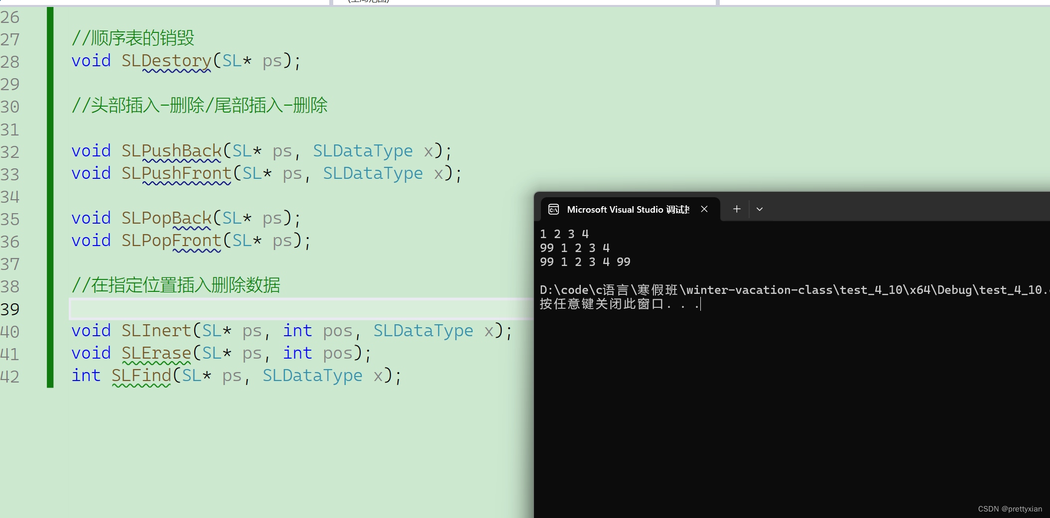 int SLFind(SL* ps, SLDataType x);接下来我们在Seqlist.c中实现各种方法
