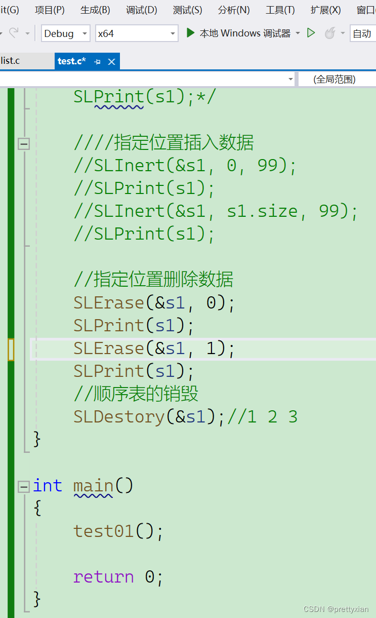 }写完一个方法就调试,检查有没有故障(在test.c中实现)