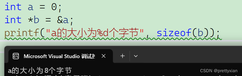 注意:指针变量的大小,与指针变量的类型无关,指针变量的大小只与硬件有关,32位机器中,地址为32个比特位,4个字节;64位机器中,地址位64位,8个字节。