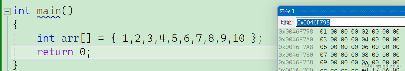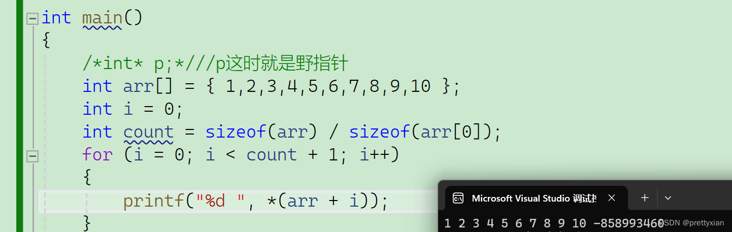 当i = 10是,此时访问的地址是非法的,随机的。此时为野指针