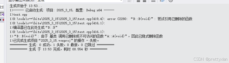 //2.基类对象不能赋值给派⽣类对象,这⾥会编译报错