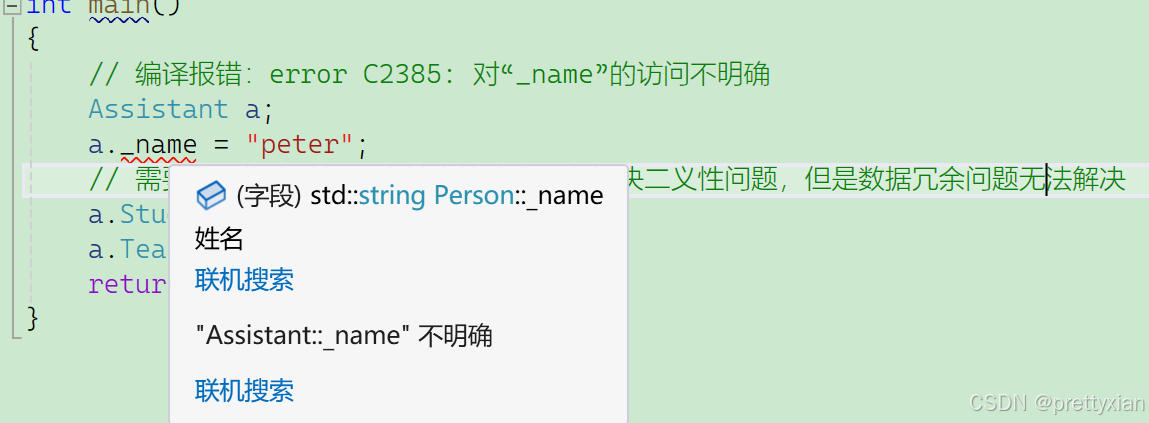 // 编译报错:error C2385: 对“_name”的访问不明确