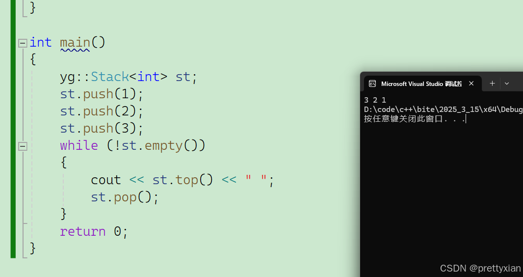 现在我们需要手动实现一个栈,我们之前已经实现了vector。这时,我们可以新建一个Stack类来继承vector的一些接口来实现Stack这个类,这样大大提高了我们的效率,减少我们代码的重复率。