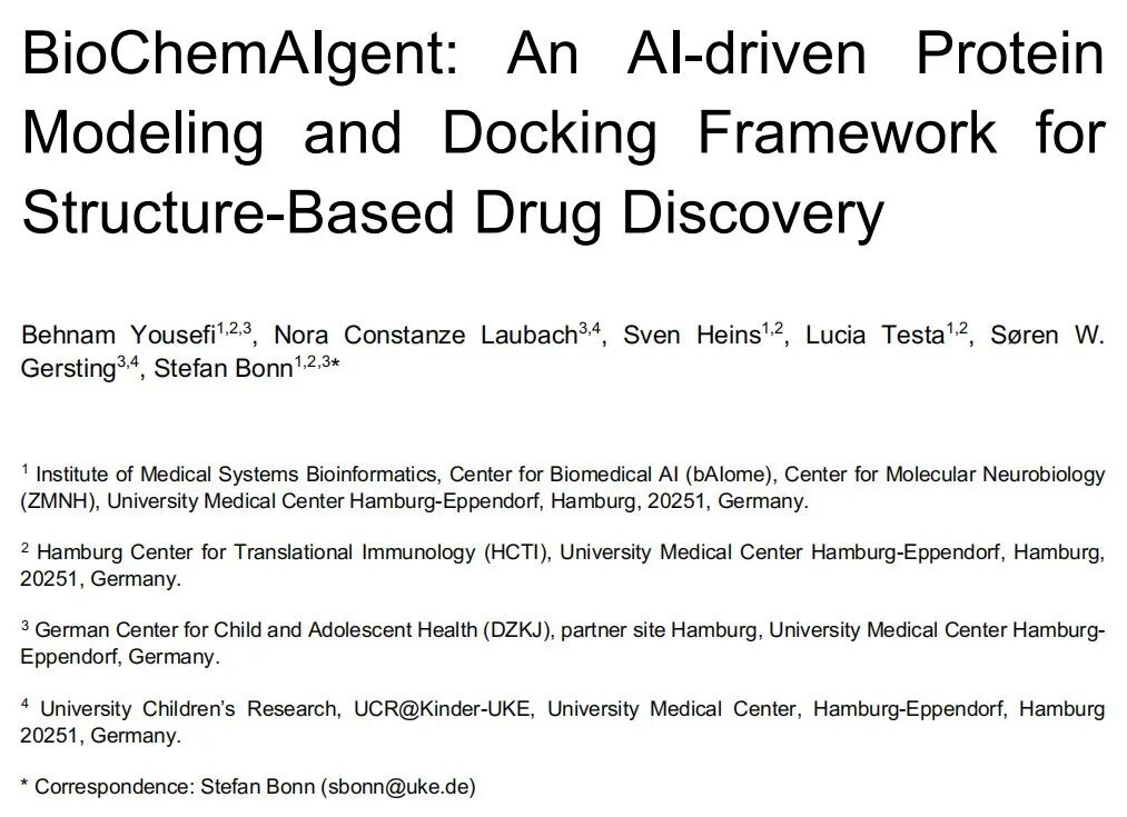 汉堡大学 BioChemAIgent AI 全程自动化:小分子分析 + 蛋白建模 + 分子对接 + 可视化全覆盖!