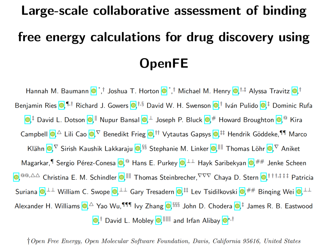 参考文献:Baumann HM, Horton JT, Henry MM, Travitz A, Ries B, Gowers RJ, et al. Large-scale collaborative assessment of binding free energy calculations for drug discovery using OpenFE. ChemRxiv. 2025.