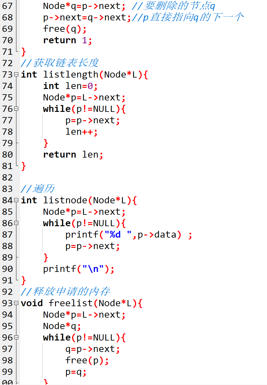 // q 用于暂存 p 的 next 节点(避免释放 p 后找不到下一个节点)