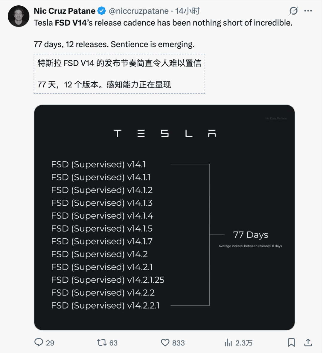 当FSD v14被推送到数百万车主的车机上时,一种奇怪的反馈开始在社交媒体上蔓延。