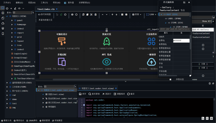 传统手动编码的繁琐,让我萌生了“拖拉拽就能做软件”的朴素诉求,这一想法催生了Ooder的首个工具——RAD可视化设计器。最初的RAD聚焦降低开发门槛,支持开发者通过拖拽组件快速搭建页面布局,让非专业人员也能参与简单应用开发。