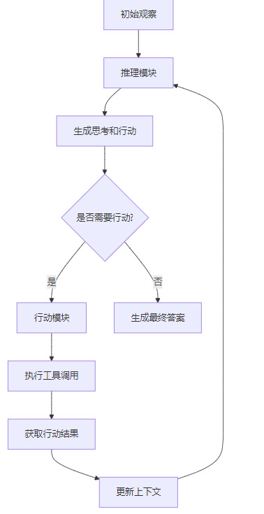 为了克服这些局限性,ReAct(Reasoning + Acting)架构应运而生。ReAct架构由普林斯顿大学等机构于2022年提出,其核心思想是将语言模型的推理能力与外部工具的执行能力相结合,通过交替进行推理和行动来解决复杂问题。